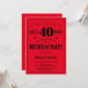 40e anniversaire Invitation Typographie noire et rouge. Arrière - plan noir et rouge. Anniversaire adulte. Hommes ou Femmes Anniversaire. Enfants Garçon ou fille Ado Anniversaire adolescent Invitation . 13ème 15ème 16ème 18ème 20ème 21ème 30ème 40ème 50ème 60ème 70ème 80ème 90ème 100ème. N'Importe Quel Âge. Pour plus de personnalisation, cliquez sur le bouton "Customiser" et utilisez notre outil de conception pour modifier ce modèle.
