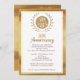 Cette invitation d'anniversaire de mariage de 50 ans est simple mais élégante. Elle présente un motif en faux or qui sert de fond aux monogrammes du couple et une zone de texte blanc avec une fine bordure. Le verso de l'invitation présente également l'image de la texture de la feuille de faux or et le motif. Cette invitation de 50e anniversaire de mariage en faux or est prête à être personnalisée.
