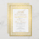 Cette invitation d'anniversaire de mariage de 50 ans présente une division décorative en feuille de faux or sur fond blanc. Le design comprend également une bordure à motif faux or et blanc. Cette invitation convient à une fête d'anniversaire de 50 ans semi-formelle ou formelle. Le design est élégant et simple. Cette invitation de 50e anniversaire de mariage en faux or est prête à être personnalisée.