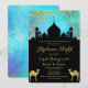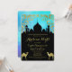 Invitation de fête sur le thème Nuit Arabesque en sarcelle et or. Parfait pour un anniversaire de tout âge, un sweet sixteen ou une Quinceanera