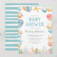 Cartes d'invitation pour baby shower sur le thème de la mer avec un fond blanc simple, poissons marins tropicaux aquarelle, étoile de mer, méduse et plantes marines, et un modèle de baby shower "sous la mer" moderne facile à personnaliser.