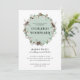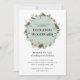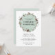 Une invitation de baby shower unique sur le thème de maman abeille avec des abeilles et une couronne florale de eucalyptus botanique et de coton. Vert menthe sur fond blanc.