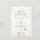 Invitation de Baby Shower Canard Vert. Gingham neutre en genre Oie Debout Invitation Drôle. Modèle de fête de printemps de sauge imprimable. G3