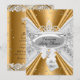 Invitation de baby shower or et argent. Élégant design de couronne de princesse scintillant et motif floral en damas argenté. Veuillez noter : Toutes les images sont plates, elles ne contiennent pas de véritables bijoux !