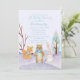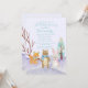 Scène d'hiver avec un arrière - plan neigeux, thème moderne de partie de baby shower du pays des merveilles d'hiver avec des animaux de région boisée : écureuil, ours et lapin dans la neige. Il y a les brindilles brunes des côtés avec un arbre bleuâtre d'hiver. Perfectionnez pour n'importe quelle célébration ou baby shower d'hiver. Personnalisez avec votre information de partie que tout le texte est entièrement personnalisable.