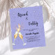 Une invitation moderne, élégante et glamour pour un Baby Shower Brunch pétillant. Un fond de couleur bleu poudré avec des bulles, une paire de flûtes, des verres. Le nom est écrit avec un style de lettrage manuscrit moderne. Personnalisez et ajoutez les détails de votre fête. 1 feuille = 1 invitation imprimée de bord à bord.