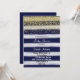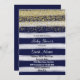 L'invitation de baby shower avec la conception de parties scintillantes d'or et le bleu marine barre l'arrière - plan d'aquarelle.