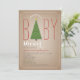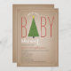 Une invitation moderne de baby shower comportant une illustration d'un arbre de Noël vert avec le pois blanc a complété avec une étoile. L'arrière - plan est de carte inspiré. Personnalisez le texte.