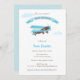 Une invitation personnalisable chérie de baby shower comportant un avion bleu et brun. Ex-libris, étiquette de adresse et autocollant assortis de faveur