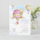 Invitation de Baby shower à ballon à air chaud rose Floral or. Atteignez de nouvelles hauteurs avec une élégante paire aquarelle avec un script fleuri et mignon. Motif floral sur le dos de la carte. Personnalisez le modèle avec vos informations, y compris le texte dans la bannière bulle. © Kimbellished, LLC