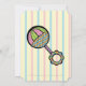 Doux et charmant, ce hochet coloré est décoré de segments en pointillés rose et vert d'inspiration cirque et de lattes bleues et oranges sur le bétail principal, de pois jaunes sur la poignée violette, et de segments aux couleurs vives comme le vitrail sur la poignée en forme de fleur. Des bandes en jaune, bleu et rose doux créent un arrière - plan doux pour contraster le bétail vibrant. Customisez le monogramme en forme de fleur avec l'initiale dernière du petit à venir et le texte ci-dessous avec les détails de votre baby shower pour faire de cette invitation une façon parfaitement personnalisée d'invitation votre famille et vos amis à votre célébration. N'oubliez pas de consulter la collection Simply Sweet Rattle pour plus de cadeaux et de produits pour un baby shower ou un petit dans votre vie.