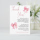 Carte de remerciements en Baby shower de cabot rose. Merci de nous rejoindre pour notre baby shower de charme orné de charmantes arcs roses ! En accord avec eux, cette note de remerciement présente une calligraphie de script élégante et un motif d'arc rose fantaisie, capturant la douceur de cette célébration spéciale. Nous sommes impatients de partager plus de souvenirs avec vous alors que notre petit paquet de joie grandit.