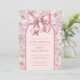 Un joli thème de baby shower arc rose fleuri et girly avec un adorable arc-en-ciel rose bébé avec un détail arc qui comprend plusieurs couleurs de rose. Un mélange de polices avec à la fois une typographie serif audacieuse et une police moderne simple. Célébrez la maman d'être dans le style ! Disponible en option plus rose bow. Vous pouvez changer les couleurs de police à ce que vous voulez. Vous pouvez également modifier la couleur arrière - plan sur l'avant et l'arrière ainsi que l'arc central et sa bordure. Derrière l'arc se trouve un motif floral rose aquarelle pour un peu de coquette. Aquarelle Fleurs Arch Cute Coquette Bow Rose Floral Fille Baby shower Invitation. Disponible sous forme d'invitation imprimée ou d'invitation numérique téléchargeable que vous pouvez envoyer par e-mail ou avoir imprimé localement !