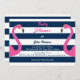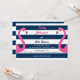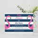Fun flamants roses met en avant cette invitation Baby shower branchée sur une marine rayée et un arrière - plan blanc, lui donnant une sensation nautique.