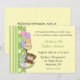 Invitation de baby shower pour la fille ou le garçon avec le point de polka vert et jaune et les frontières rayées, ours de nounours mignon dans le parapluie tenant un bouquet de ballon. Il est facile customiser et venir des invitations complet avec des enveloppes et votre choix de papier.