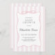 Célébrez votre journée spéciale avec cette invitation au baby shower arc à rayures roses. 🎀 Dotée d'un arrière - plan à rayures classique et d'un élégant design en ruban, cette modèle est parfaite pour les douches pour bébés. Customisez instantanément, imprimez à la maison ou envoyez numériquement. Idéal pour les mamans-à-être modernes qui aiment le style intemporel.