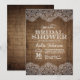 Célébrez la future mariée avec ces jolies invitations en bois rustique et dentelle.