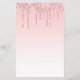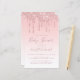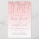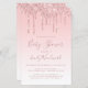 Cette invitation baby shower branchée présente une bordure de fausse parties scintillant rose scintillante sur un arrière - plan rose pâle. Les mots "Baby shower" et le nom de la maman-to-be apparaissent en écriture manuscrite rose, avec le reste du texte en police sans serif.