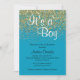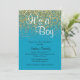 Belle parties scintillant bleue et or saupoudrer l'invitation à la douche de bébé garçon.