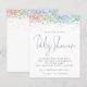 Un rapport qualité-prix BUDGET alternative sur une taille plus petite 4,5 x 5,6" semi-brillant poids 110lbs, qui est d'une épaisseur similaire à une carte postale (cependant ne convient pas à l'utilisation comme carte postale.) VEUILLEZ NOTER qu'il y a UN invitation par feuille. Invitation de Baby shower de Parties scintillant multicolore budget. Brillant glam pour célébrer la maman d'être avec une fausse bordure de parties scintillant en rose, jaune, violet et vert, au sommet des deux côtés et en tête d'occasion dans un ensemble informel. Personnalisez facilement le reste du texte à vos propres détails.