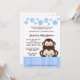 Ces invitations adorables de baby shower de singe de bruit de bébé de Polkadot de rayure bleue de garçon sont imprimées sur un papier lisse, vibrant, mat de poids de la couverture 110lb classé par 5x7. Contient le contenu réutilisé par 50%. Perfectionnez pour n'importe quel baby shower, nuptiale, bachelorette, mariage, ou invitation d'anniversaire.