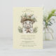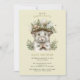 Une charmante souris de forêt lunaire aux champignons et à la verdure, invitation à la fête du 1er anniversaire. Sexe neutre pour fille ou garçon.