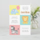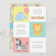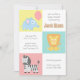 Conception colorée de bande dessinée des animaux mignons de zoo se composant de l'éléphant bleu, du lion orange et du zèbre. La page inverse se compose de la même conception disposée dans un style de motif. La conception est neutre de genre, la rendant appropriée au bébé et à la fille. Rendez votre baby shower extra spécial avec cette invitation adorable de baby shower qui va impressionner vos invités. Il est également approprié aux fêtes d'anniversaire de thème d'enfants comme le safari et le thème de jungle. L'invitation peut être facilement personnalisé avec vos détails de partie. Cadeaux assortis disponibles. Conçu par griffonnage rouillé.
