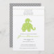 Cette invitation neutre de baby shower de genre mignon comporte un éléphant de point de polka de bébé et de maman. Vert clair et gris donnez une sensation neutre douce.