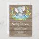 Rustic Boy Elephant Baby shower Invitation Bleu et Rustic Wood Arrière - plan. Invitation Baby shower. Aquarelle Floral Flower et Leave. Pour plus de personnalisation, cliquez sur le bouton "Customiser" et utilisez notre outil de conception pour modifier ce modèle.