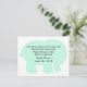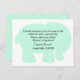 Baby shower neutre et élégant, invitation faite dans un vert menthe simple et blanc, avec une silhouette verte menthe d'un mignon éléphant, sur un arrière - plan blanc. L'arrière de l'invitation est fait en vert menthe massif. Customisez les champs de texte noir à l'avant et à l'arrière pour répondre aux besoins de votre bébé événement.