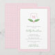 Un design d'invitation de baby shower intemporel pour une future maman élégante ! Dans des tons classiques rose et vert, cette invitation présente un monogramme à lettre unique et un détail de feuille de palmier tropical. Il y a une bordure et un support en tressage de canne de bambou. En dehors des feuilles, toutes les couleurs peuvent être personnalisées par vos soins pour correspondre à votre événement, directement dans l'outil de conception Zazzle.