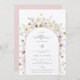 Baby shower fleur sauvage. Cadre en arc fleur sauvage coloré, accent papillon, typographie gris foncé chic et support couleur rose coordonné.