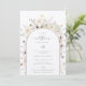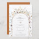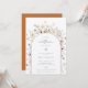 Baby shower fleur sauvage. Cadre en arc fleur sauvage coloré, accent papillon, typographie gris foncé chic et coordination de la couleur orange de terre cuite.