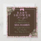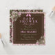 Cette invitation de baby shower moderne personnalisable présente des fleurs roses et vertes sur fond marron. Personnalisez-la en ajoutant vos détails dans la police de votre choix !