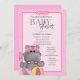 Ce design a un bébé hippo doux avec un roseau rose, un arc rose et un ballon de plage. Jolie invitation baby shower pour la mère d'être. Personnaliser avec vos détails de douche. kristiwdesigns