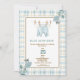 Célébrez l'arrivée de votre petit garçon avec cette adorable invitation à la baby shower "Blue Jean Baby", qui présente une paire de jeans de bébé suspendus à un fil à linge, des accents de eucalyptus à l'aquarelle douce et un fond charmant à carreaux bleus. Ce design doux et ludique donne le ton parfait pour une baby shower au thème champêtre, denim ou rustique. C'est idéal pour les futures mamans qui aiment une touche de fantaisie avec un charme terre-à-terre. Des barbecues dans le jardin aux rassemblements intimes et chaleureux, cette invitation ajoute une touche de délice denim à votre célébration.