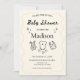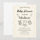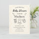 Célébrez la future maman avec cette invitation fantaisiste au baby shower, avec des doodles dessinés à la main d'un lapin, une tenue pour bébé, et un bib. Une bordure ondulée douce et une typographie moderne ajoutent charme et chaleur à ce design neutre pour les hommes et les femmes, parfait pour des fêtes de jardin, des fêtes de jardin ou des réunions décontractées. Personnalisez facilement avec le nom, la date, l’emplacement et les détails RSVP pour créer une invitation unique.