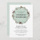 Une invitation de baby shower unique sur le thème de la future maman abeille, avec des abeilles et une couronne florale botanique d'eucalyptus et de coton. Vert menthe sur fond blanc.