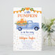 Cet adorable, garçon, invitation de baby shower budget de 5,5 po x 8,5 po avec un pick-up bleu aquarelle chargé de citrouilles d'automne serait parfait pour votre douche! C'est fabuleux pour un baby shower d'automne ou de temps de récolte. Tellement mignon pour accueillir un nouveau bébé doux !