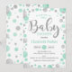 Invitation baby shower - Mint Green Dots d'argent de menthe élégant design avec fausse parties scintillant.