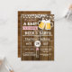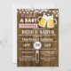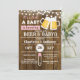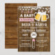 Fond en bois rustique avec invitation de baby shower pour garçon sur le thème de la bière et du BBQ.
