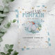 Cartes d'invitation pour la baby shower d'un petit garçon ‘petite citrouille sucrée’ avec un fond blanc simple, une citrouille à l'aquarelle bleue adorable, des papillons, des fleurs, de l'eucalyptus, des étoiles dorées et bleues, et un modèle de baby shower moderne facile à personnaliser.