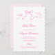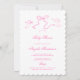 Célébrez l'arrivée de votre petit avec élégance avec notre charmant Baby shower rose à main mignonne! Cet invitation de baby shower fantaisiste présente mes illustrations originales, un joli dessin vintage inspiré d'arc, des anges de couleur rose vif, et un poème sur un côté inversé pour demander gentiment un livre au lieu d'une carte de votre invité. Cette invitation à la douche pour bébé fille peut être utilisée toute l'année, quelle que soit la saison. Si vous aimez le style sur mesure et chic et grand millénaire, ce design unique est pour vous.
