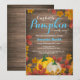 Invitation de Baby Shower Rustique d'Automne pour Garçon Bleu avec Citrouille. Invitation de Baby Shower d'Automne. Fond en Bois Rustique. Campagne Vintage Rétro. Fleurs et Feuilles de Citrouille à l'Aquarelle. Bleu et Orange. Pour une personnalisation plus poussée, veuillez cliquer sur le bouton "Personnaliser" et utiliser notre outil de conception pour modifier ce modèle.