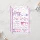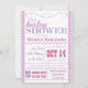 Invitation de Baby shower de filles violettes et roses avec un look moderne mignon. Design générique qui fonctionnera avec n'importe quel thème baby shower! Peut aussi être bon pour les Baby showers chrétiens ou catholiques avec un verset de la Bible sur le dos!