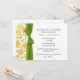 L'élégante invitation baby shower du couple faite en blanc, avec de jolis graphiques floraux jaunes et verts et un ruban et un arc verts, ornent le côté gauche de l'invitation. Le texte est prêt à être personnalisé, pour répondre aux besoins de votre bébé événement. Charmant invitation non sexiste les parents à être chères.