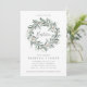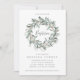 Un modèle d'invitation de baptême avec une couronne rustique avec feuillage vert et baies forestières.