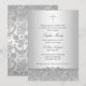 Invitation de baptême. Roses argentées élégantes et croix de diamant. Exclusif Zazzle. Personnalisez avec vos propres détails et photo. Veuillez noter que toutes les images sont plates ! elles n'ont pas de véritable dentelle ou de bijoux !