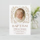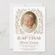 Célébrez le baptême de votre petit avec cette élégante invitation de baptême de style boho, caractérisée par une palette de couleurs neutres et douces, une adorable photo de bébé Olivia Grace et des accents délicats de couronne de fleurs. Un choix parfait pour une célébration de baptême chic et moderne.
