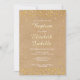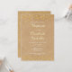 Invitation de baptême coeurs dorés. Avec un fond rustique de style papier kraft, des coeurs dorés en confettis et une superbe calligraphie avec ombre portée dorée. Le verso présente des coeurs dorés en confettis.